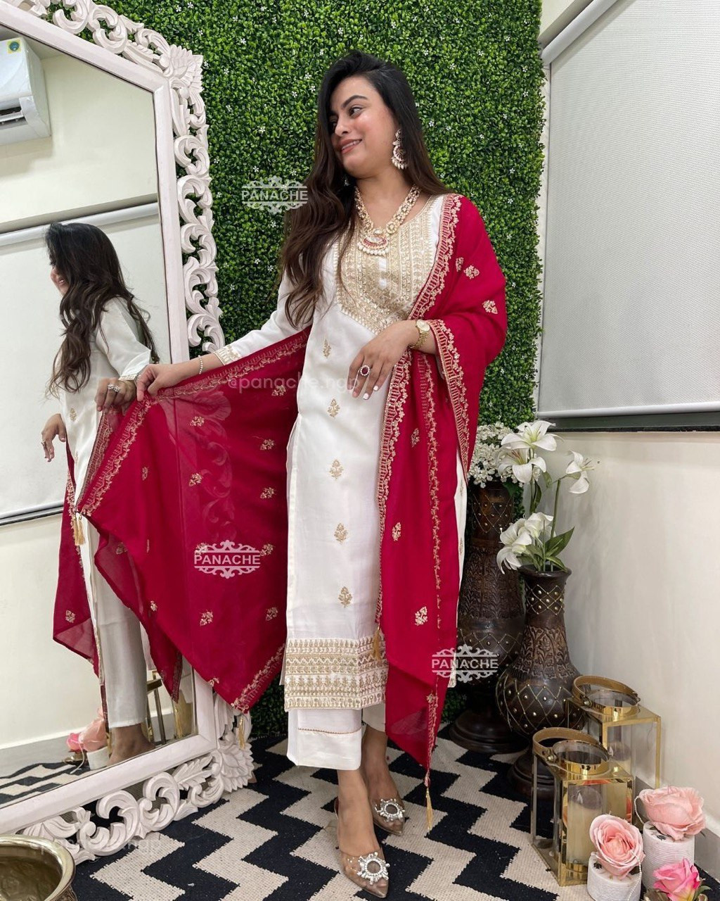 Whether it's a celebration, wedding function, or evening event, this designer set delivers unmatched grace and timeless charm.