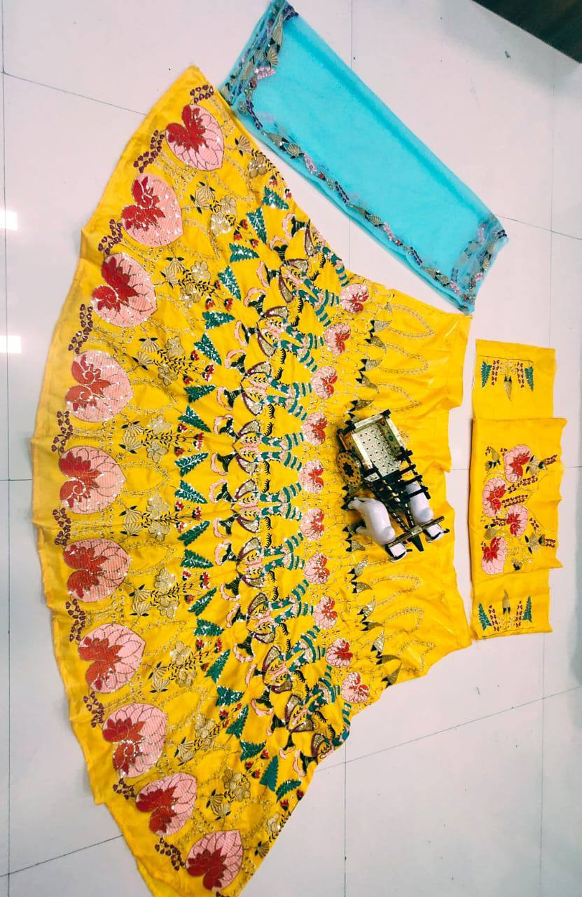Elevate your ethnic style with our stunning Designer Bangalori Satin Silk Lehenga — a masterpiece of elegance and craftsmanship.