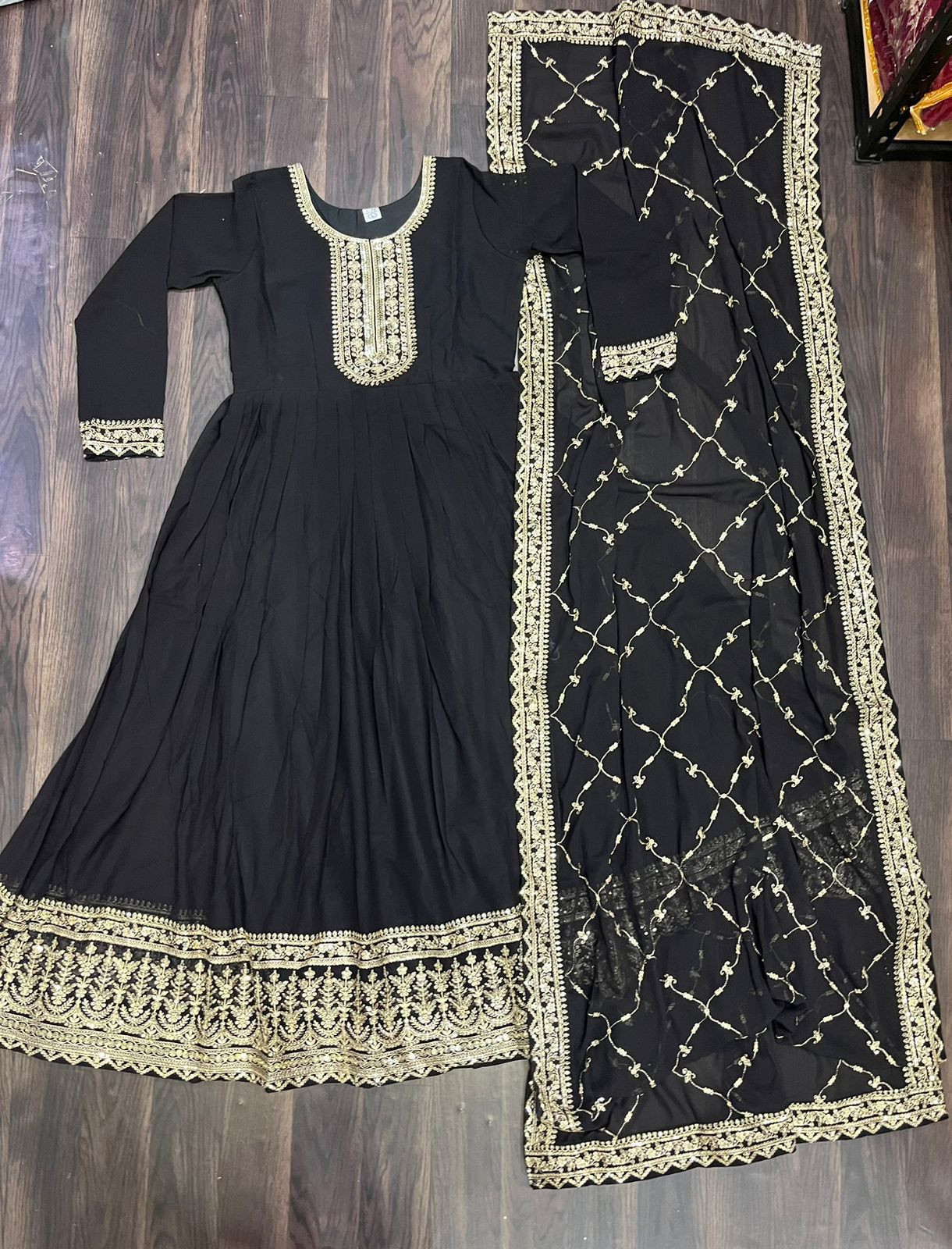 Fabric & Work: Premium Faux Blooming fabric adorned with rich sequins embroidered work for a stunning shimmer.