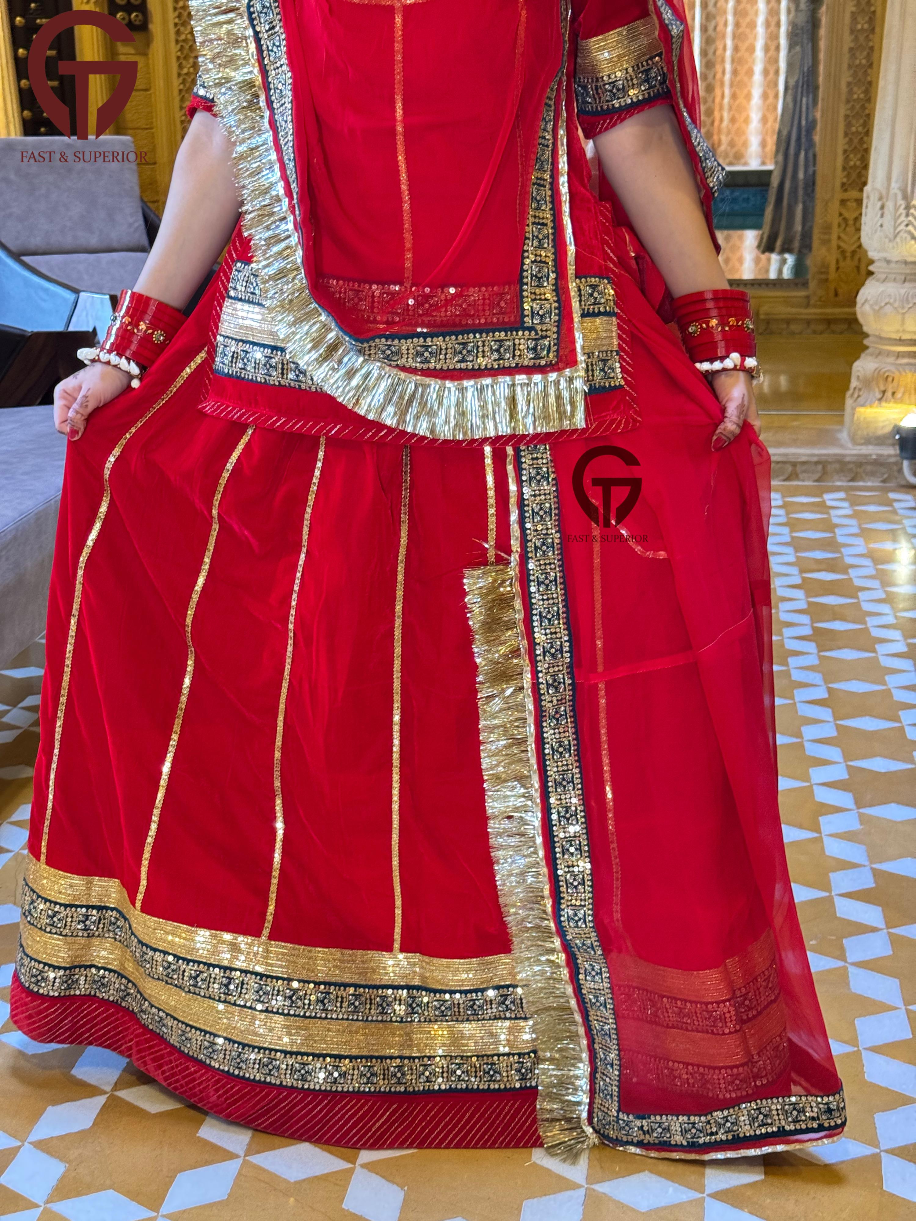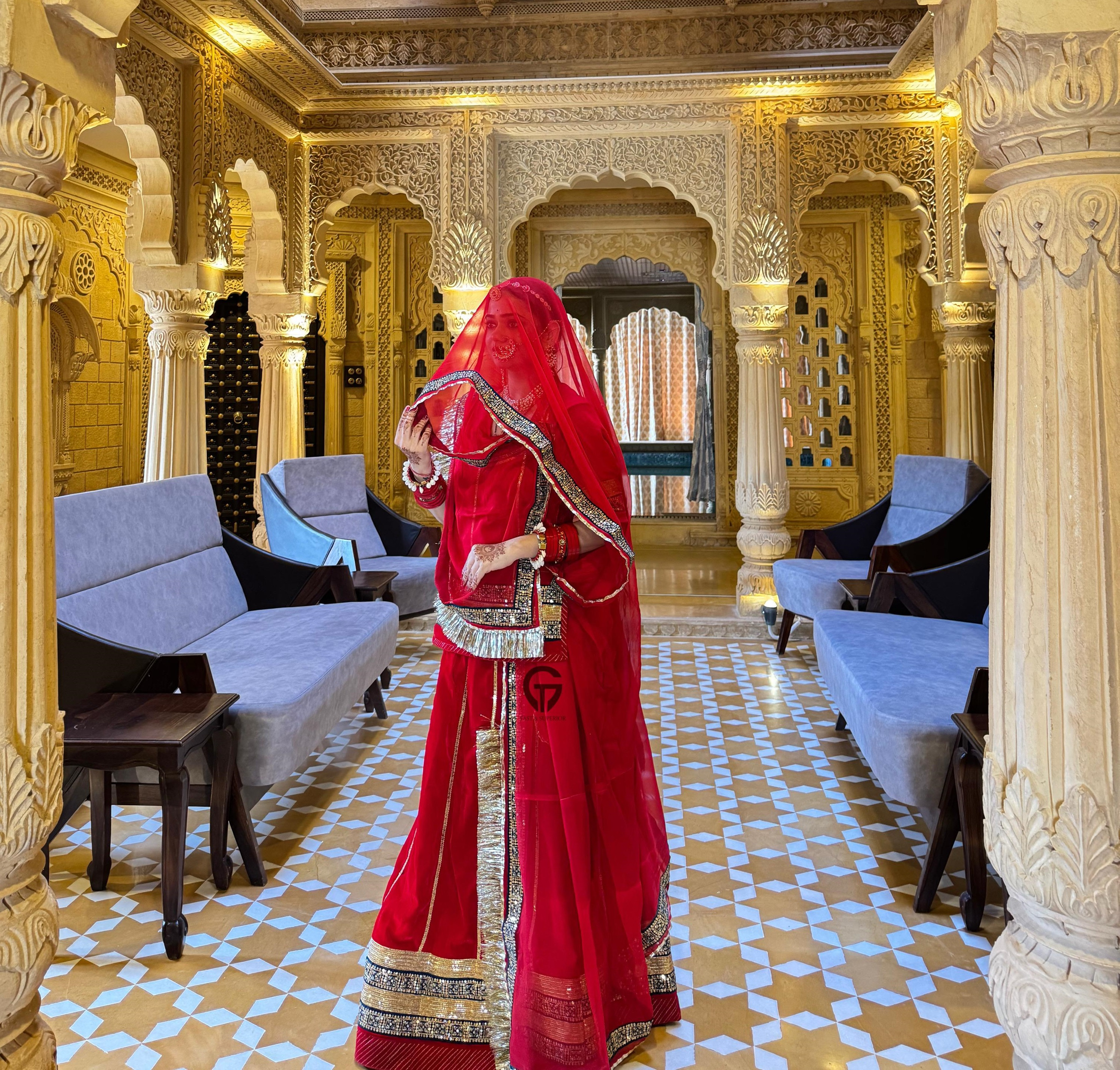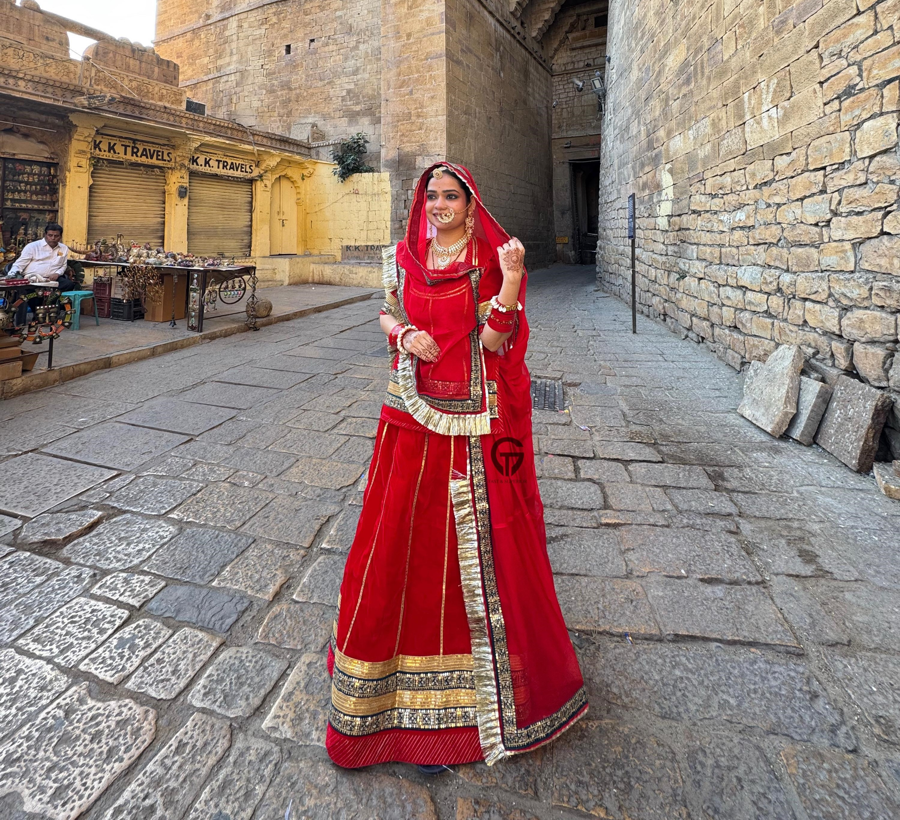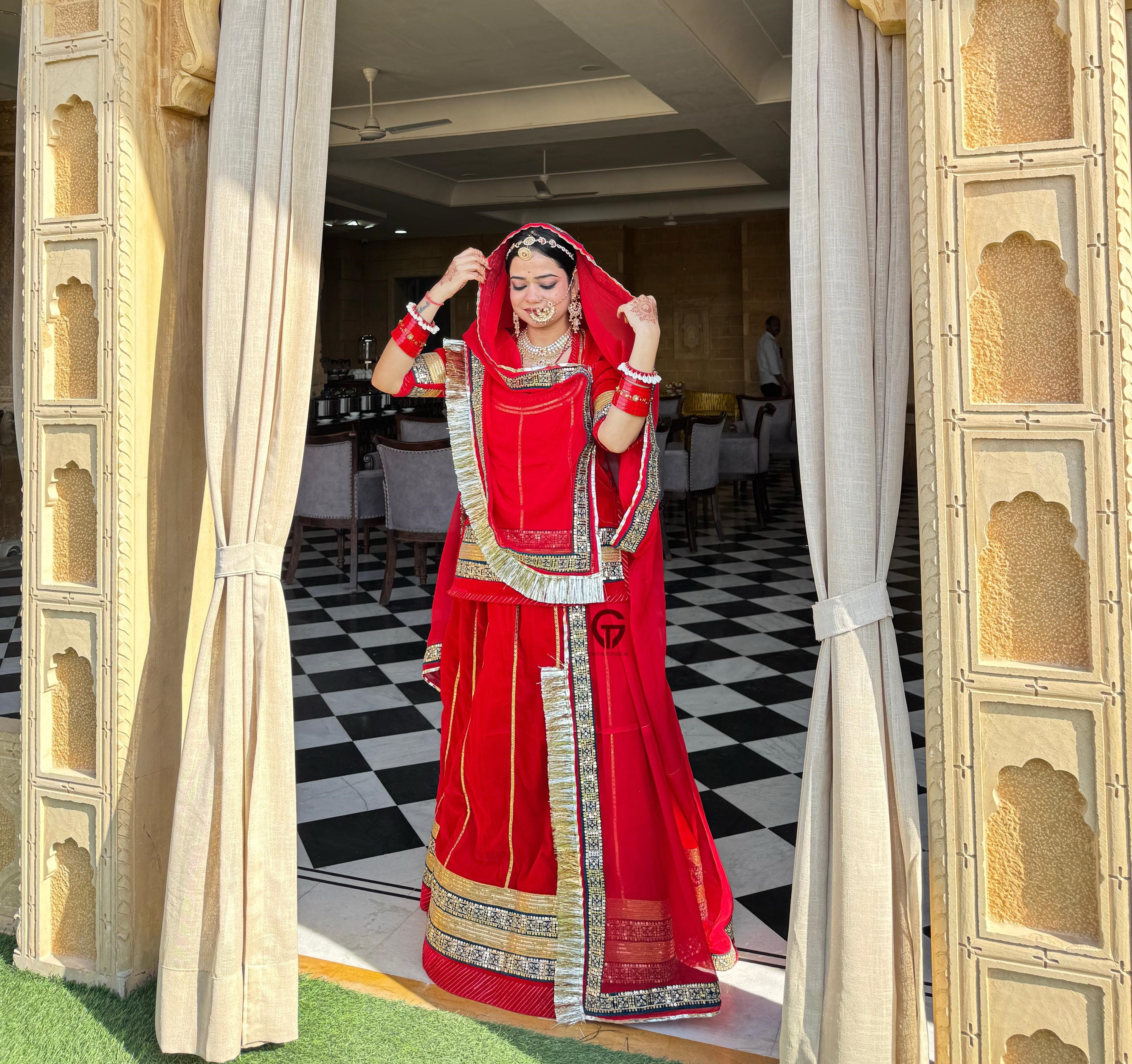 Occasions: This attire is often worn during weddings, religious ceremonies, or cultural festivals. It is seen in various states of India, such as Rajasthan, Gujarat, and others, where such traditional wear is a part of the cultural heritage.