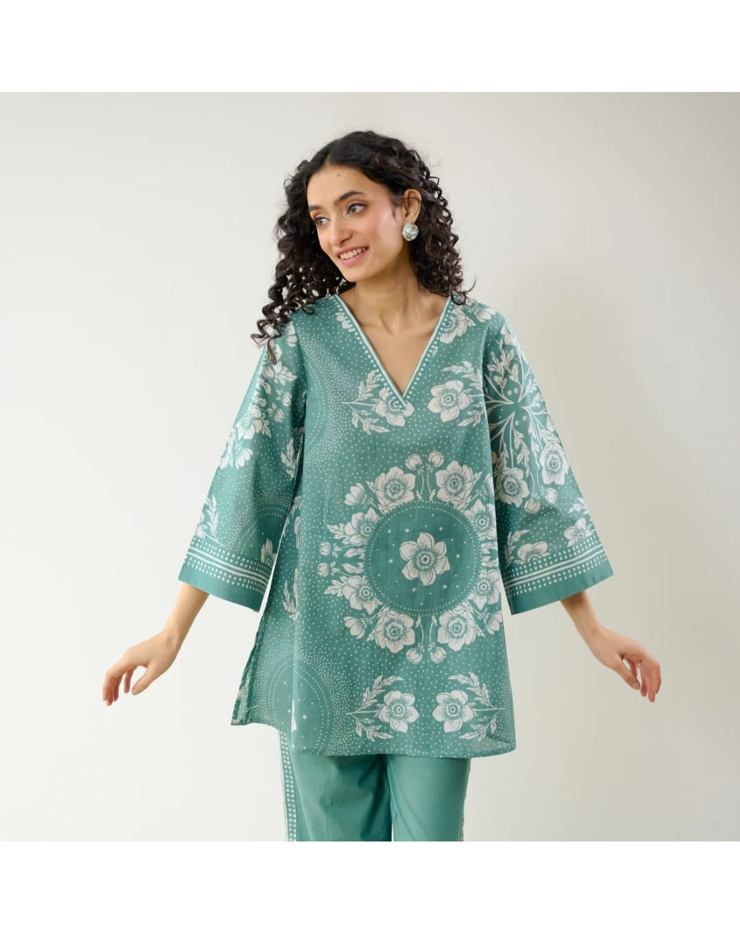 Perfect for brunches, casual outings, or relaxed festive wear, the set includes a stylish kurta top and matching bottoms, making it a complete and fashion-forward outfit.