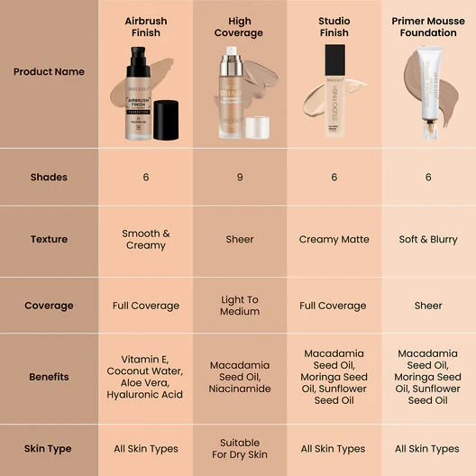 Swiss Beauty Airbrush Foundation gives you a smooth, flawless, airbrushed look with full coverage up to 8 hours. Its lightweight and waterproof formula blends effortlessly, hides imperfections, controls oil, and delivers a natural matte finish. Suitable for all skin types, this foundation feels breathable and comfortable without looking heavy or cakey. Perfect for daily wear, office, parties, and special occasions.