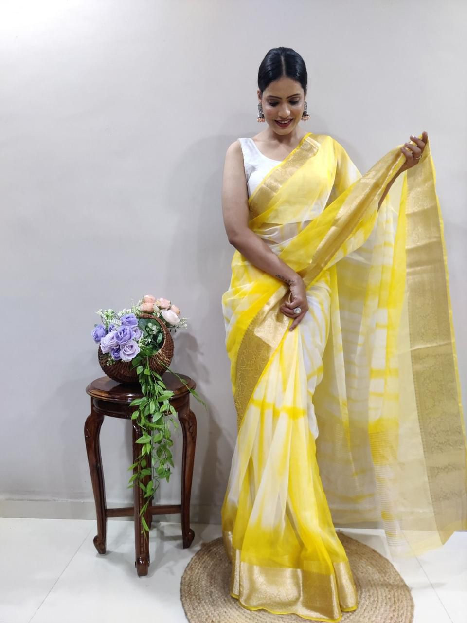 Work: Pure Zari Weaving for a rich, elegant finish