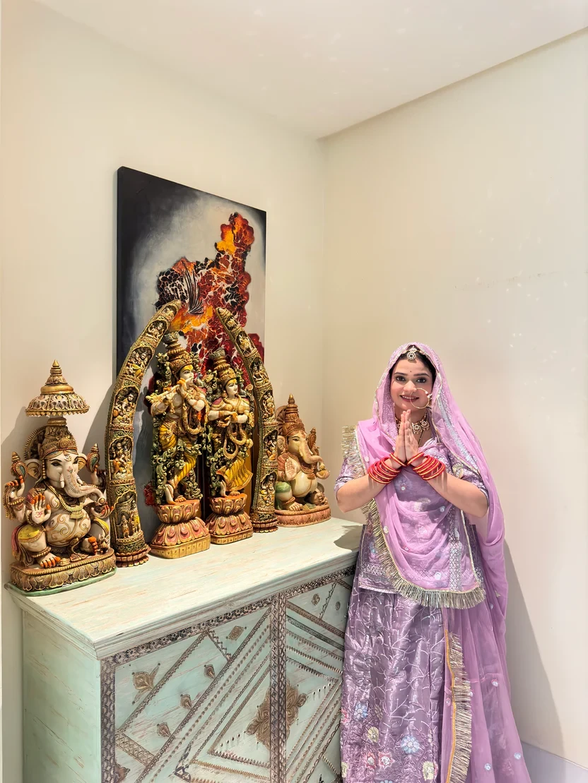 The lightweight and airy tissue fabric ensures comfort and grace, making it perfect for any occasion, from festive celebrations to intimate gatherings. The soft, shimmering texture of the tissue adds an ethereal quality, enhancing the overall allure of the ensemble.