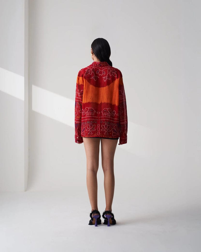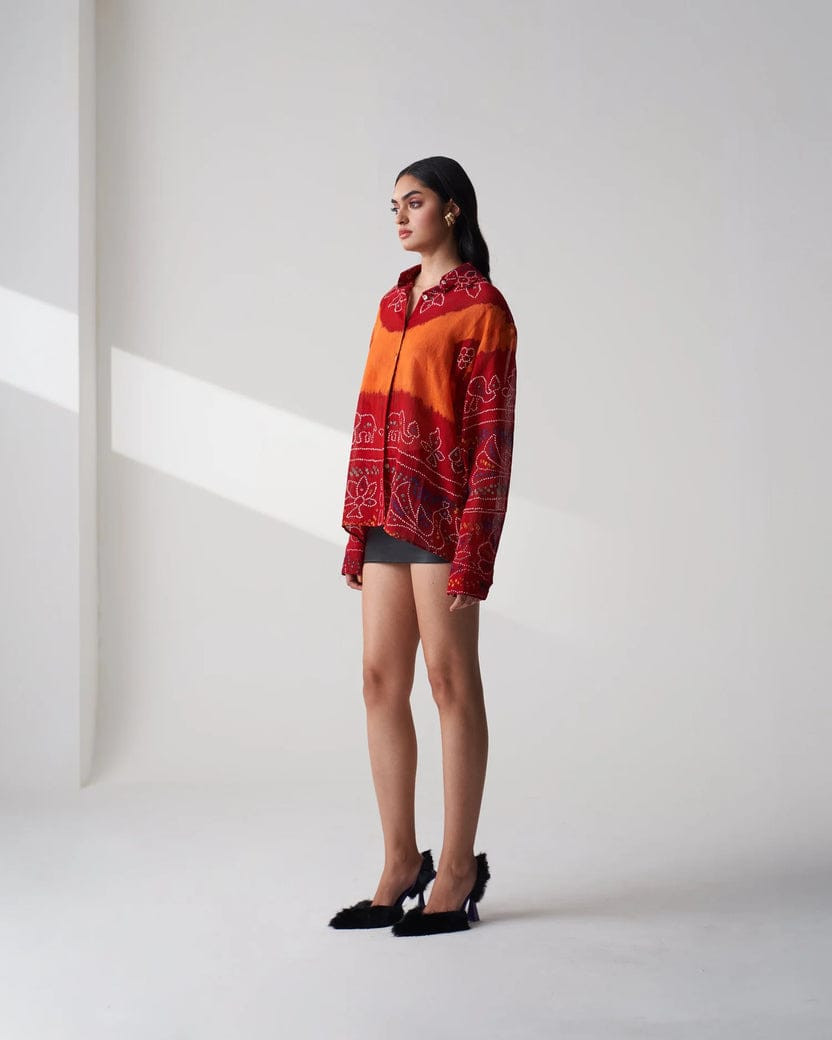 Embrace effortless summer style with our Upcycled Pure Cotton Bhandej Odhni Cotton Summer Shirt for Women. Crafted from authentic, pre-loved odhni (traditional Indian scarf) fabric, each shirt tells a unique story through its vibrant, hand-dyed bhandej patterns. The lightweight, breathable pure cotton ensures you stay cool and comfortable even on the hottest days, making it your go-to piece for relaxed outings, beach days, or simply lounging in style. Feel good knowing you're making a sustainable choice without compromising on fashion.