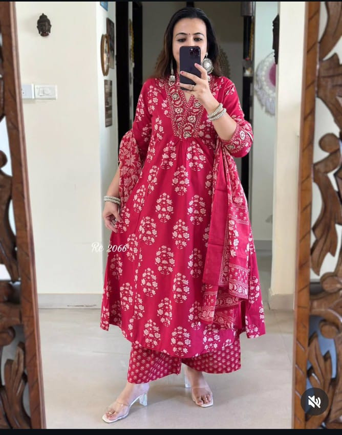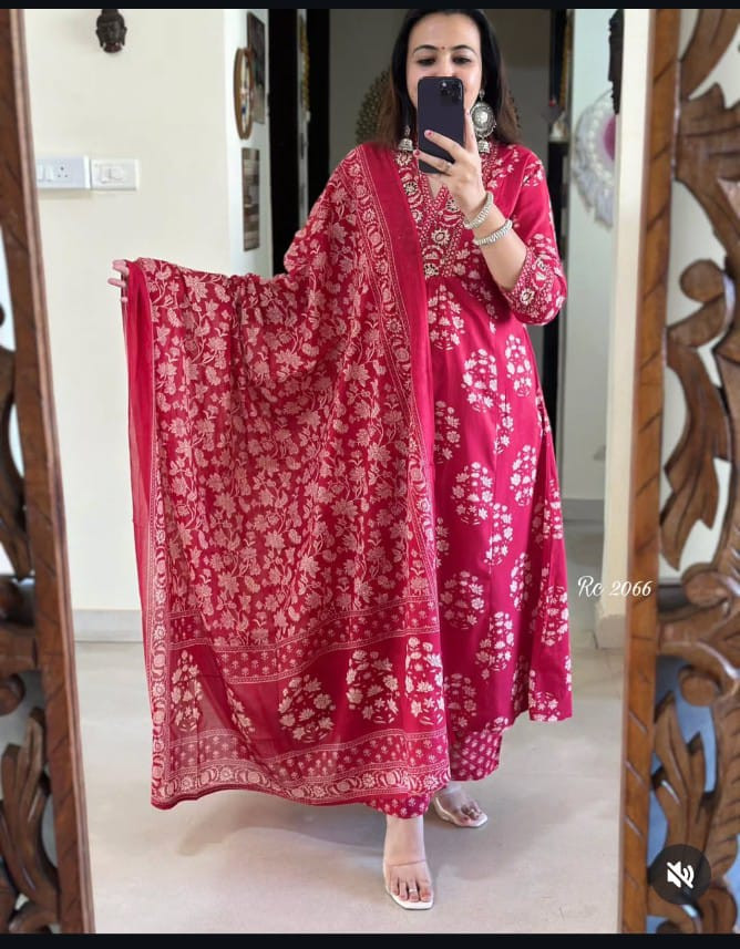 Dupatta: Matching cotton dupatta included, completing the look with effortless grace