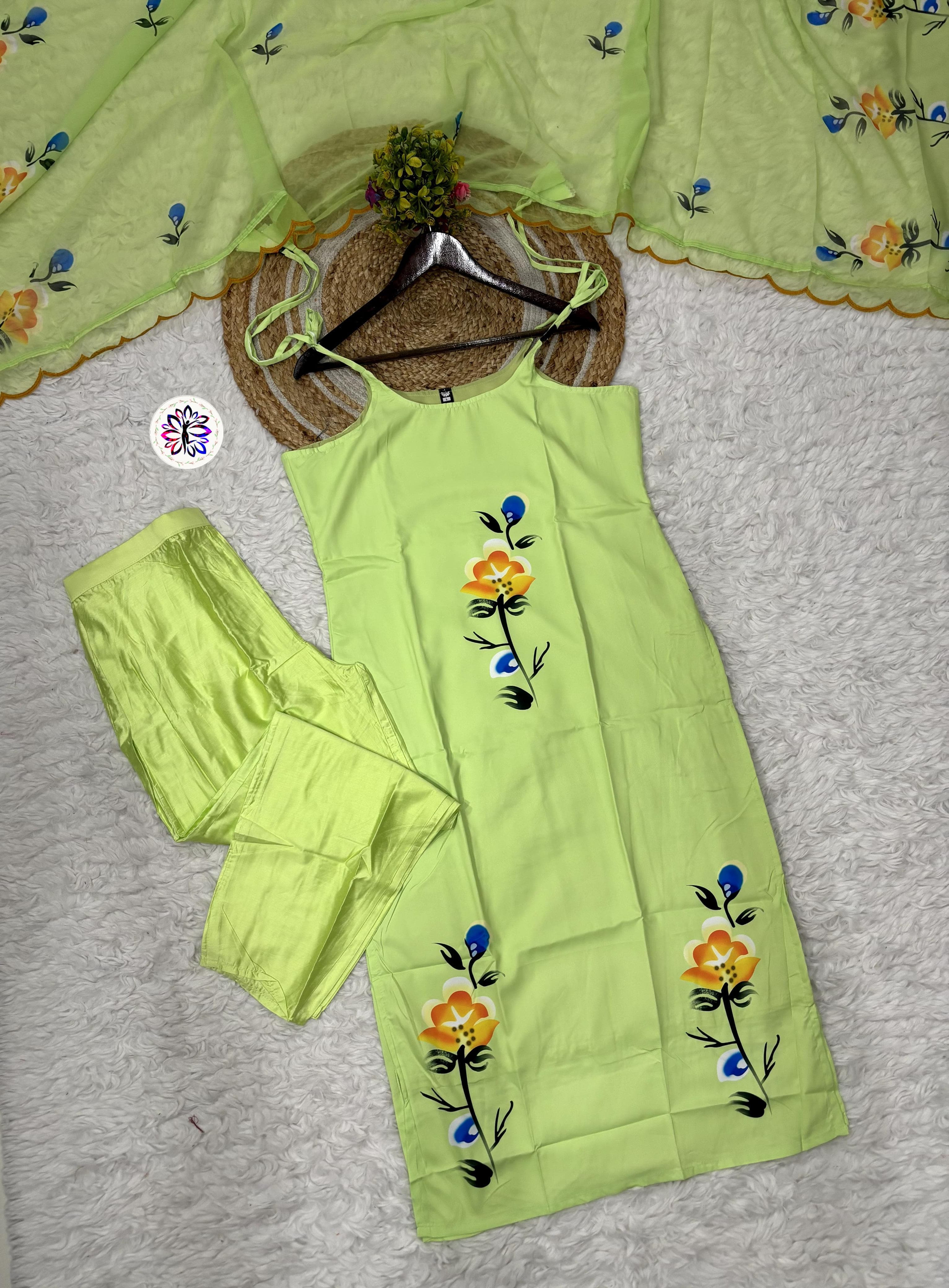Step into elegance with our newest collection of viscose twill printed tops paired with viscose chanderi plain bottoms and flowy georgette dupattas. Designed for comfort and everyday glam, this stylish three-piece set is your perfect pick for casual charm or festive flair — at prices that feel just right!