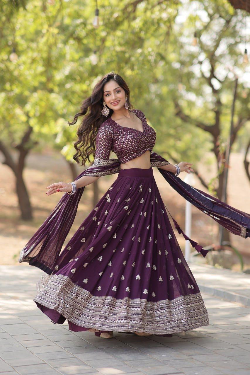 Without Blink Select this Designer Lehenga collection Made with Faux Blooming With Sequins And thread Embroidered work Lehenga Choli with Dupatta