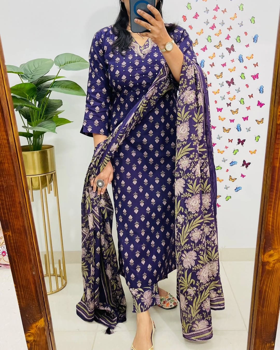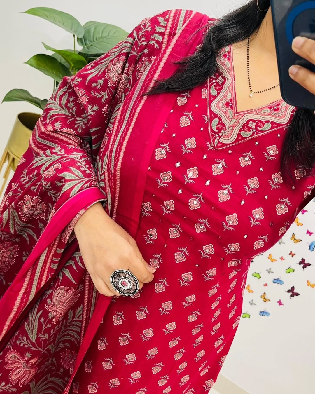 Pure fine Cotton fabric Embroidery Work Kurti with Pant with cotton 100-100 Dupatta