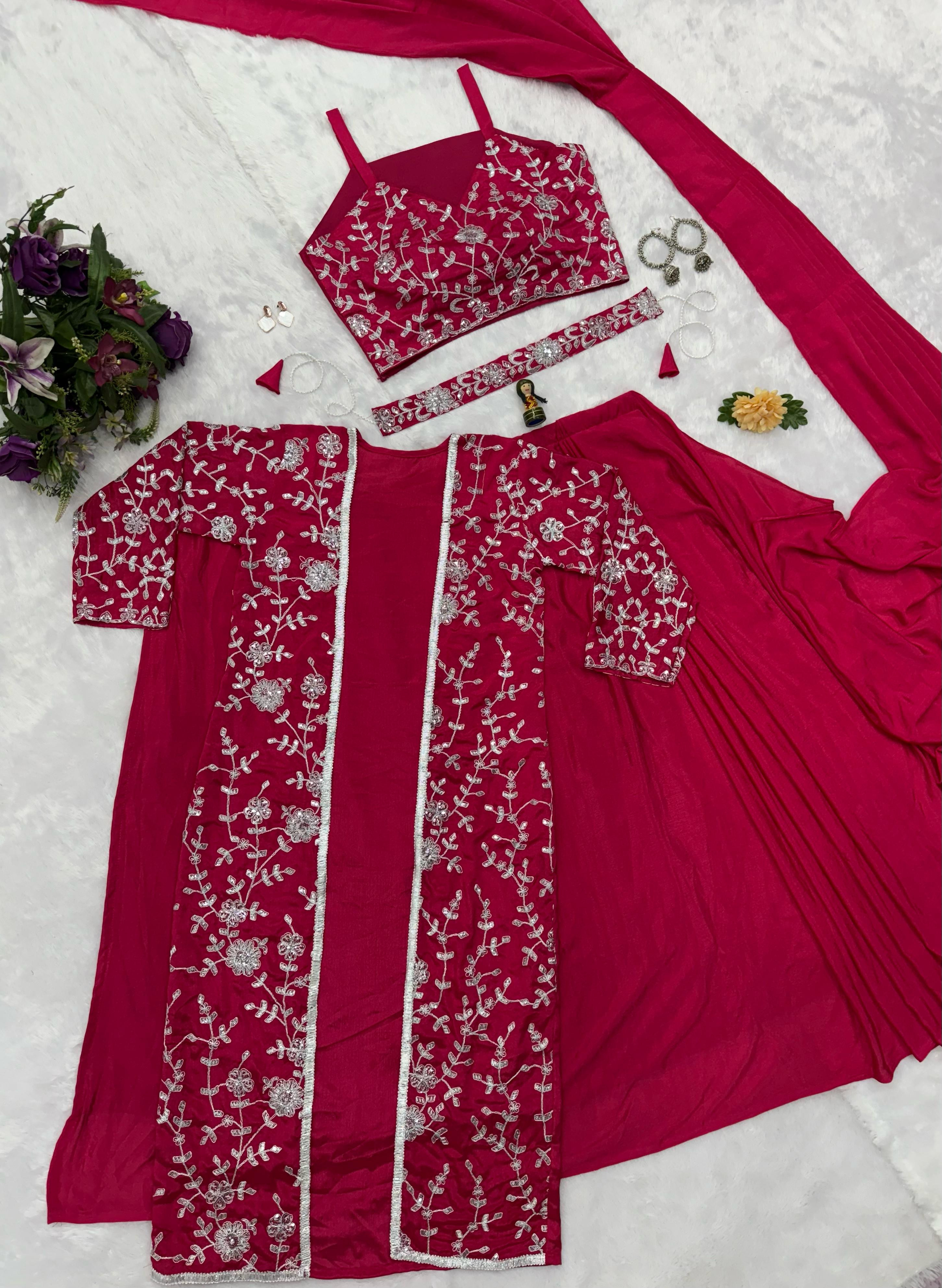 WE ARE LAUNCHING NEW SUPERHIT TRENDING READY TO WEAR SAREE WITH FULLY EMBROIDERED KOTI ON CHINON FABRIC WITH STITCH BLOUSE