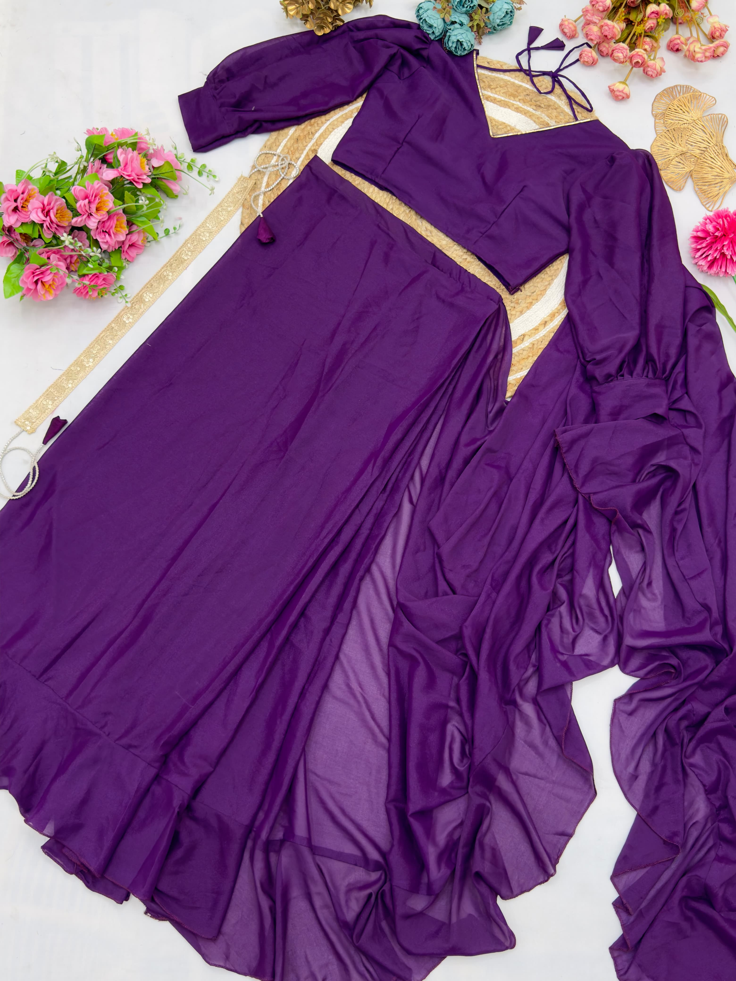 One More Super Hit Fancy Star Georgette Purple Frill Saree With Readymade Blouse Design Launch