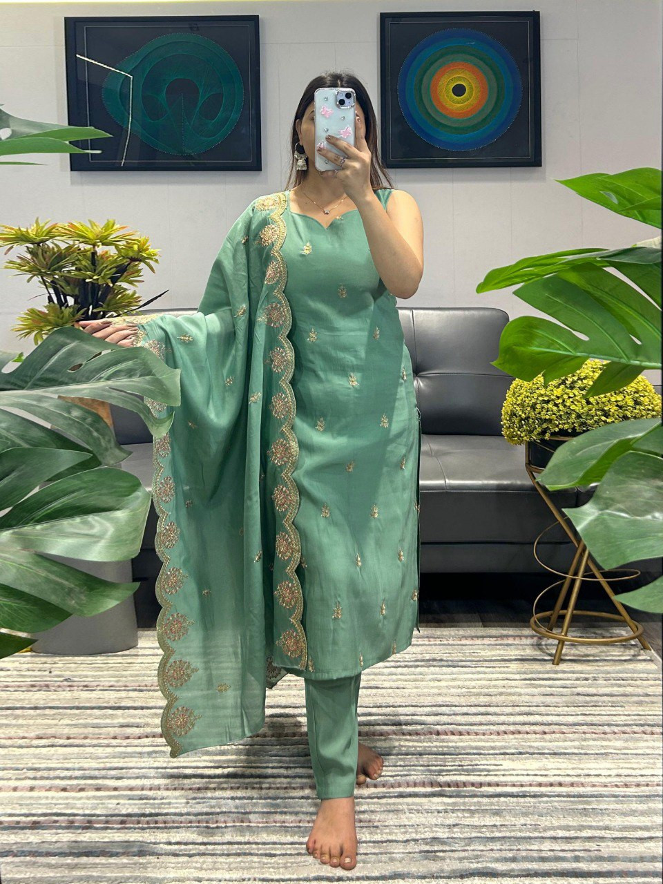 Elevate your ethnic style with this elegant Women’s Art Silk Kurta Pant Dupatta Set in a refreshing light green shade. Crafted from premium art silk fabric, this outfit blends comfort with festive charm.