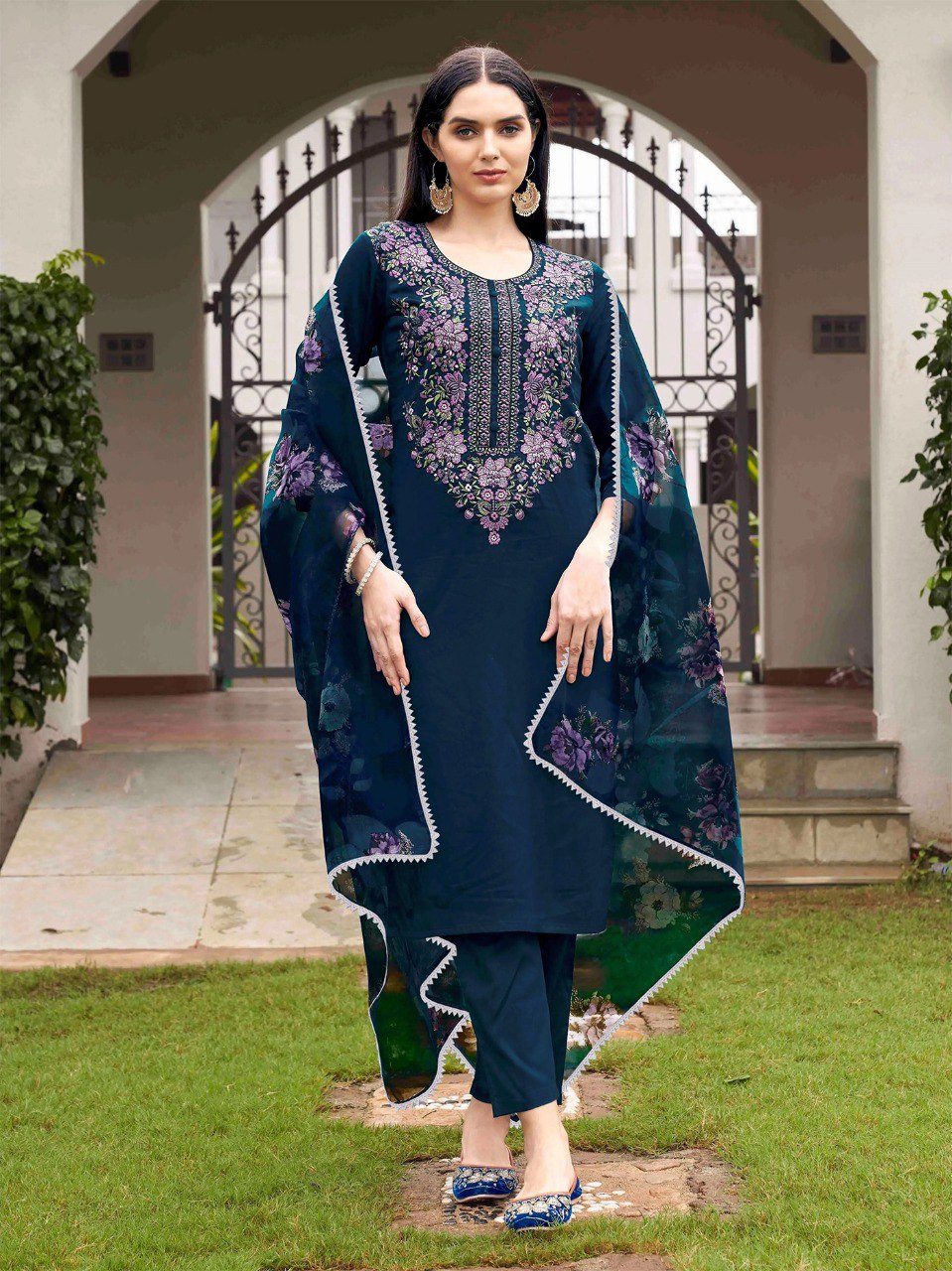 Paired with matching Tesla pants (39-40 inches) for a tailored fit and an exquisite Organza dupatta with lace border (2.2 m), this set is perfect for festive occasions, family gatherings, or casual ethnic wear.