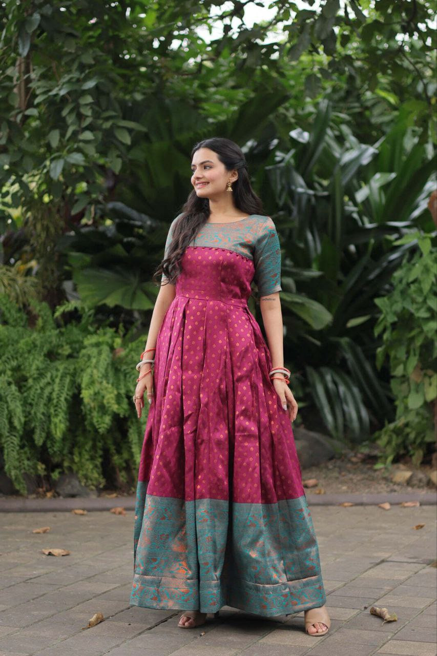 Elevate your ethnic style with this elegant Women's Woven Jacquard Anarkali Gown in a beautiful pink shade. Expertly stitched and designed for grace and comfort, this gown is perfect for festive occasions, weddings, and traditional events.